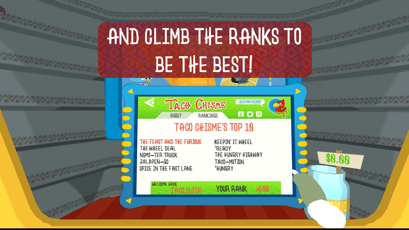 Taco Sloth never did fit into those normal sloth-y stereotypes. This speedy sloth's dream is to own Mexico's #1 Taco truck! Travel Mexico cooking delicious tacos for all your animal friends and rise through the ranks of taco truck fame. Learn new recipes, travel to new locations, and unlock new equipment to elevate the fine art of taco making!