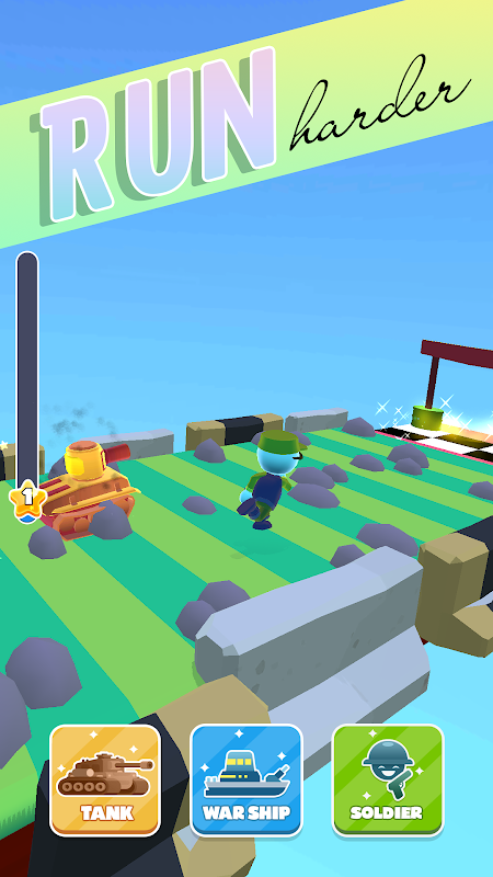 Switch between Soldier, Tank & Warship to get the shortest lap time.