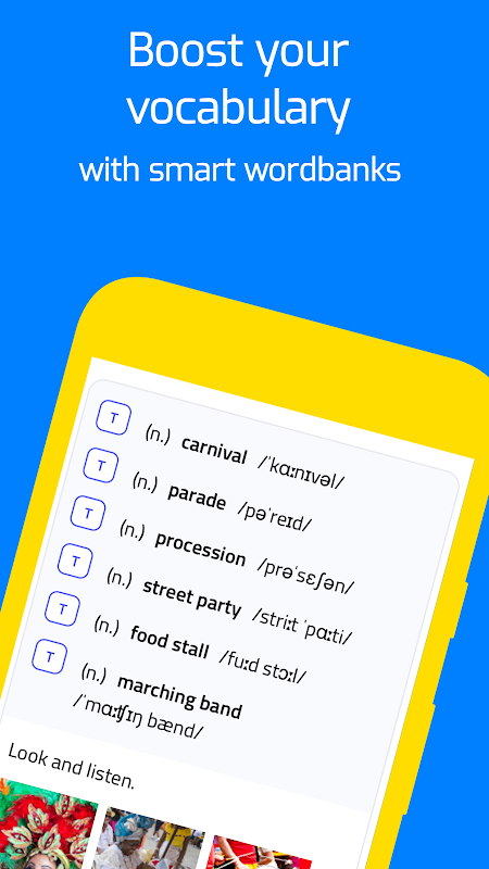 Sama ada anda seorang pelajar pemula atau lanjutan, Talkman sesuai untuk anda. Anda boleh membuka kunci guru peribadi anda untuk berlatih bercakap di luar bilik darjah. Butang interaktif membolehkan anda mendengar dan menguasai bahasa Inggeris kehidupan sebenar.