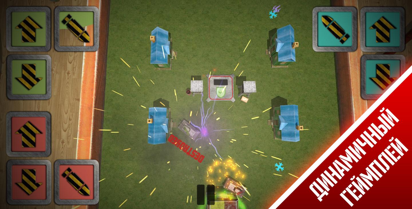 Banyak mod: kemusnahan, pertempuran pasukan, pertempuran terhadap bot, serta mod Tank Soccer baru!