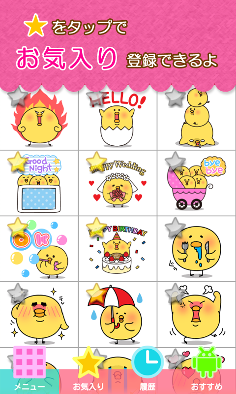 LINEなどでスタンプみたいに使えるイラストレーターTANOさんの画像集アプリ画像を選択して送りたいアプリを選択するだけお気に入りや履歴機能があって超便利