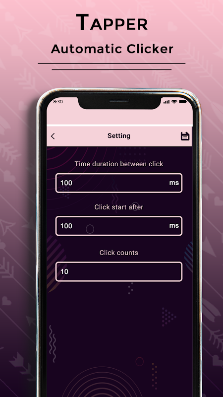 Tapper- Automatic Clicker has a Float point with it's easy to tap on any side in your mobile place, just tap on the start button and it will automatically provide users float point with that you can easily control your click. application with click one time on mobile screen and it will automatically tap with specific time interval in your mobile screen.