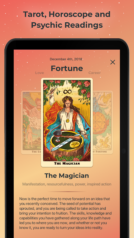 Aplikasi ini penuh dengan banyak ciri dan jauh melebihi aplikasi tarot lain! Anda boleh bersembang dengan psikik kami, menerima bacaan tarot, spread kad harian, pandangan numerologi, getaran dan banyak lagi.