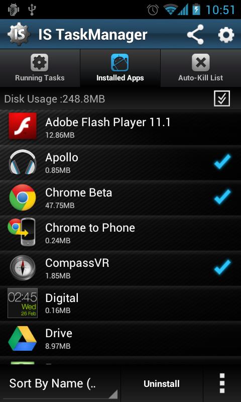 (IS) Advanced Task Killer is a smart tool to manage, uninstall and kill running applications in background.