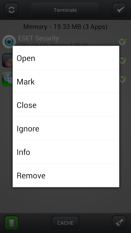 Dengan aplikasi ini Anda dapat menyentuh memori up gratis (menukar semua proses yang tidak perlu) dan menghapus cache, yang pada gilirannya akan mempengaruhi perekonomian baterai dan mempercepat sistem anda. Anda dapat mengatur pembersihan otomatis waktu, aplikasi secara otomatis akan membersihkan memori sistem, ditandai dengan menutup aplikasi. Anda juga dapat menggunakan pembersih otomatis layar atenuasi. Dalam aplikasi ini juga memiliki built-in jadwal pembersihan cache yang otomatis, dampak lebih baik pada operasi perangkat. Anda bebas untuk memilih aplikasi mana yang ingin untuk secara otomatis menutup, dan yang meninggalkan. Aplikasi penting yang dapat Anda tambahkan ke dalam daftar pengecualian.