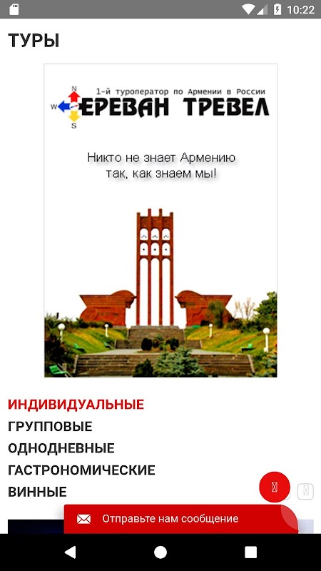 Туроператор по Грузии. Организация и проведение экскурсионных программ, экстремальных и эко туров. Отсутствие языкового барьера, низкие цены и сервис, достойный европейского уровня - вот составляющие успеха местных курортов. Вас ждет погружение в волшебную атмосферу странствий и приключений, открывая для себя интересные места и маршруты.