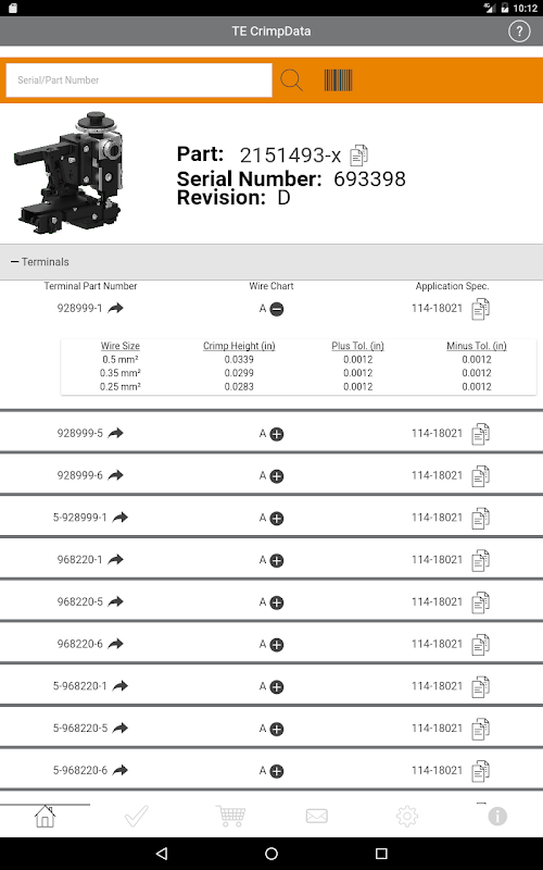 The ability to manage inventory and stay productive is now in the palm of your hand. The new TE CrimpData app allows customers to scan the 2D data matrix barcode now standard on all new OCEAN applicator ID tags and get quick access to a wealth of product information. And if you have an older TE applicator without a 2D barcode, the TE CrimpData app is designed to allow users to type in serial and part numbers into the tool to access the same valuable information.