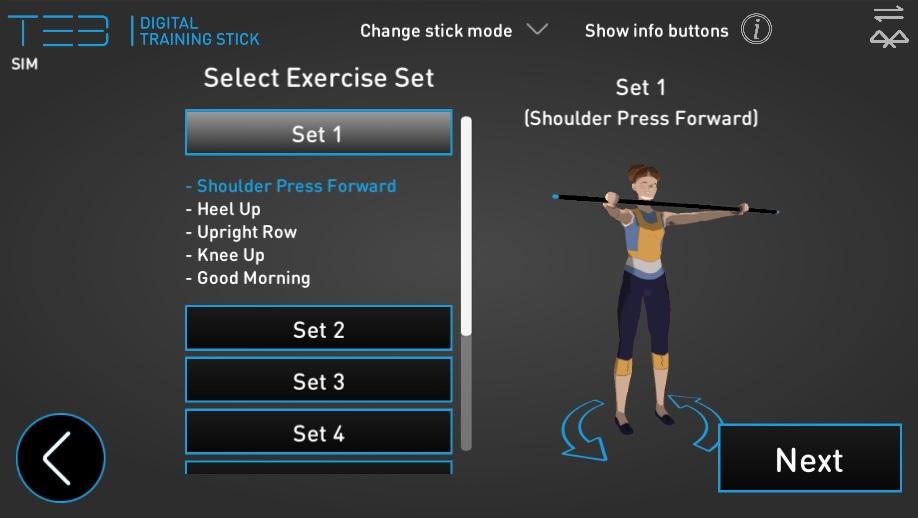 The TE3 Move application makes data analysis and transforms this information into easily understandable visual form. The stick also guides the user to do the movements correctly through vibration impulses. This also increases concentration and the awareness of our body motion.