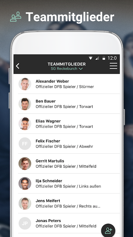 Semua pemain yang berdaftar untuk pasukan dalam DFBnet dipaparkan dalam aplikasi dan boleh dijemput dengan mudah melalui WhatsApp, e-mel atau SMS. Pemain dan jurulatih tambahan boleh ditambah.