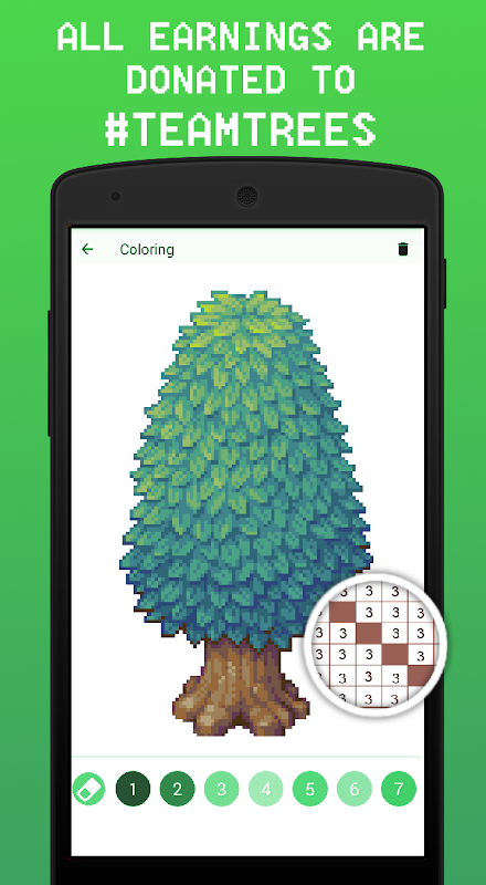 teamtrees color by number is a free color by number app for trees in pixel art format to helt the #teamtrees org in planting 20 million trees!. we feature more the 20 ixel art trees in beautiful pixel art format to color by number. all earnings will be donated to teamtrees organization!