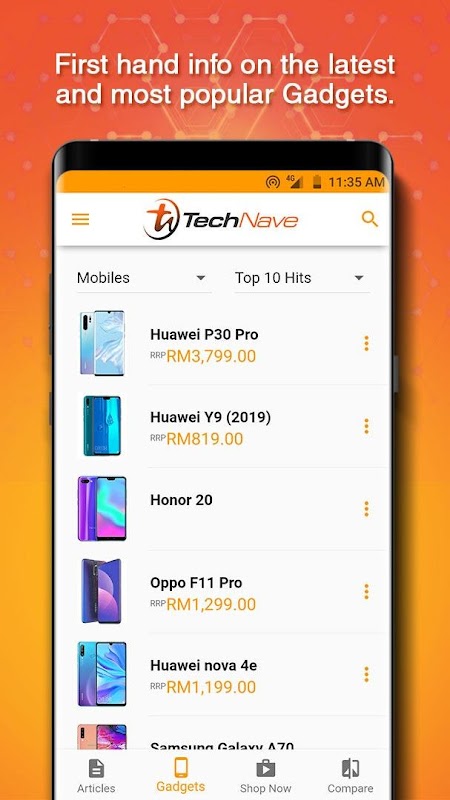 Meliputi berita teknologi dan ulasan dari luar negara dan pandangan tempatan seperti laman web terkenal yang terkenal, mashable, techcrunch, theverge dan gsmarena, aplikasi TechNave.com mempunyai spesifikasi & alat perbandingan harga yang mudah digunakan untuk telefon, peranti mudah alih dan rancangan telefon.
