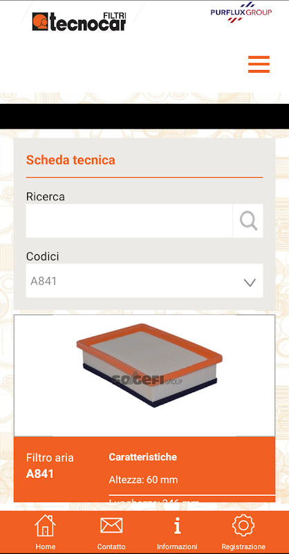 Aplikasi Tecnocar akan memberikan anda akses kepada rangkaian penuh penapis Tecnocar.