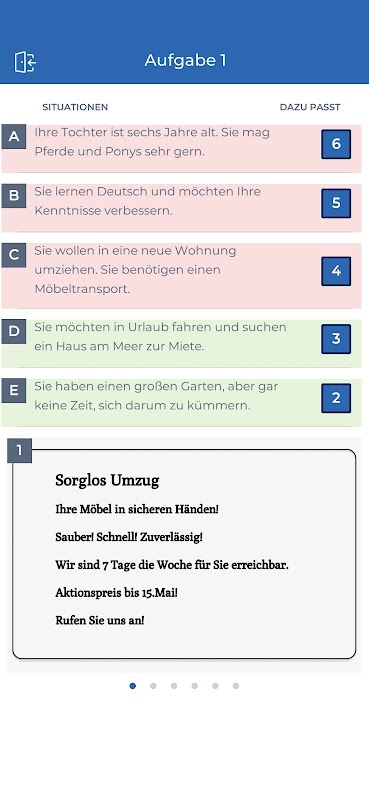 Uji German A1 membolehkan pengguna berlatih bahasa Jerman semasa dalam perjalanan dengan selesa dan sistematik.