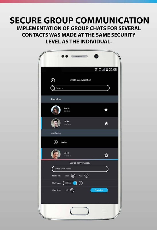 - More than 6 encryption levels of transmitted information. PUSH notification also received in a "secret language" form;