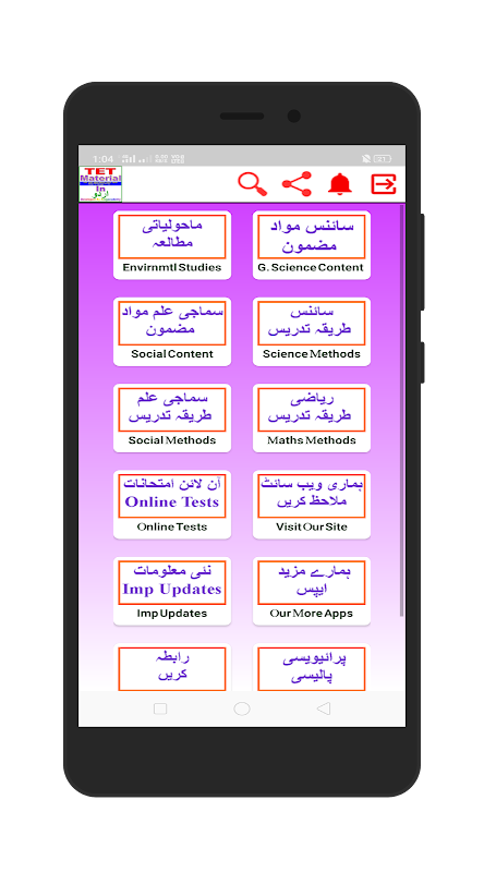 Bahan TET dalam Bahasa Urdu - Persediaan Peperiksaan Guru direka khas untuk pelajar Sederhana Urdu yang bersedia untuk pelbagai Ujian Kelayakan Mengajar (TET) di seluruh India. Apl ini termasuk bahan mengikut subjek, kuiz dan ujian dalam talian untuk membantu calon meningkatkan persediaan mereka untuk peperiksaan seperti CTET, TSTET, APTET dan TET peringkat negeri yang lain.