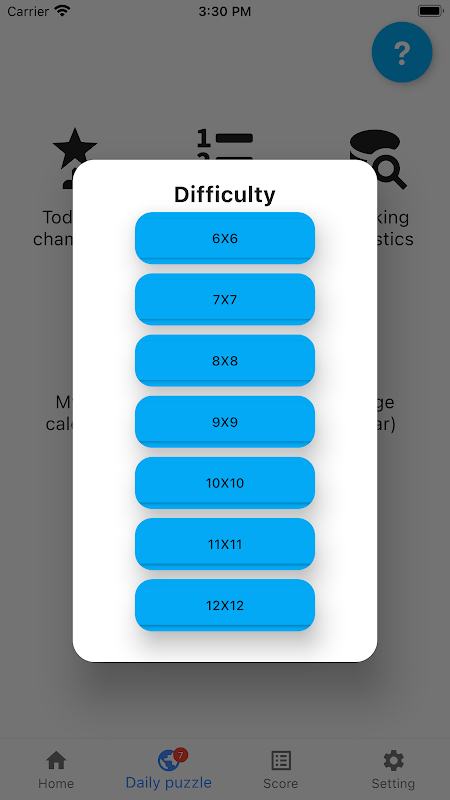 - Anda boleh memilih tahap permainan di antara 7 tahap yang berbeza (6x6 ~ 12x12)