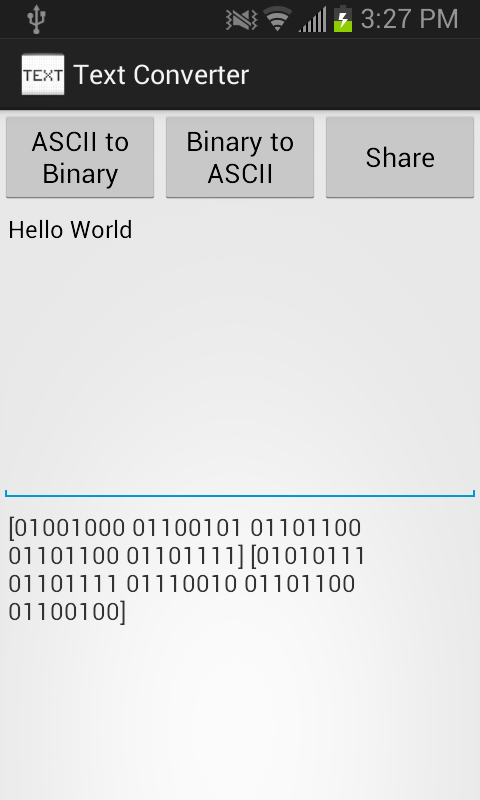 Buat mesej anda, menukar mesej anda dari ASCII kepada Perduaan Perduaan atau kepada ASCII (lebih banyak ciri untuk datang tidak lama lagi), dan kemudian berkongsi mesej anda dengan rakan-rakan anda!