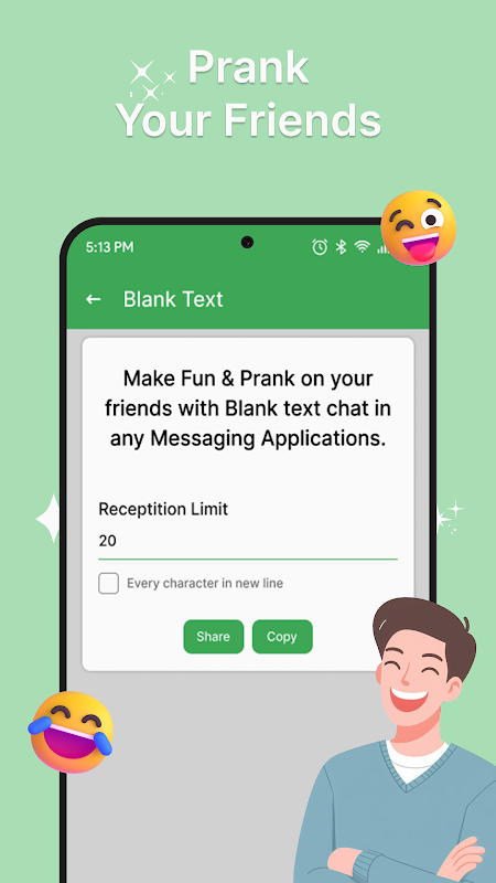 Pengulang Teks membolehkan anda mengulang teks dengan emoji dan pemformatan khas, sesuai untuk apa jua majlis.
