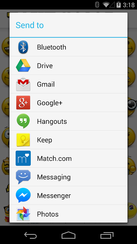 To share a text smiley mini, simply touch it, then touch the chat app you want to share it with!