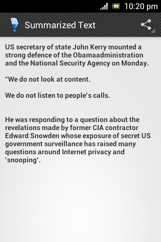 Provided the ability to get content of web page directly to "Text Summarizer" app (Ex: Go to Menu on browser -> Share Page -> Select Text Summarizer)