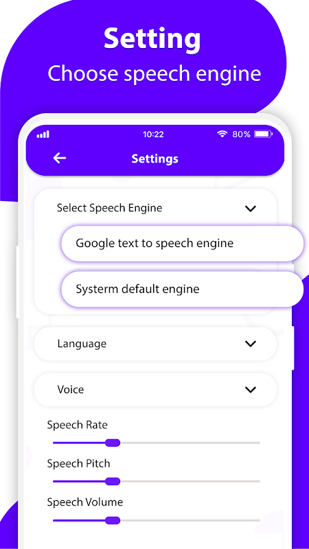 Text to Voice - PDF, Word, Excel & Browser Reader is a simple & meaningful application that can make users' workflow easier. In this app, users can perform actions like speech voice, engine, rate, & pitch, etc. They can create a new file in that users can write manually & they can write with the help of the google assistant tool. In the Speech Engine module, there is an option to choose either Google Text-to-speech Engine or System Default by using this app.