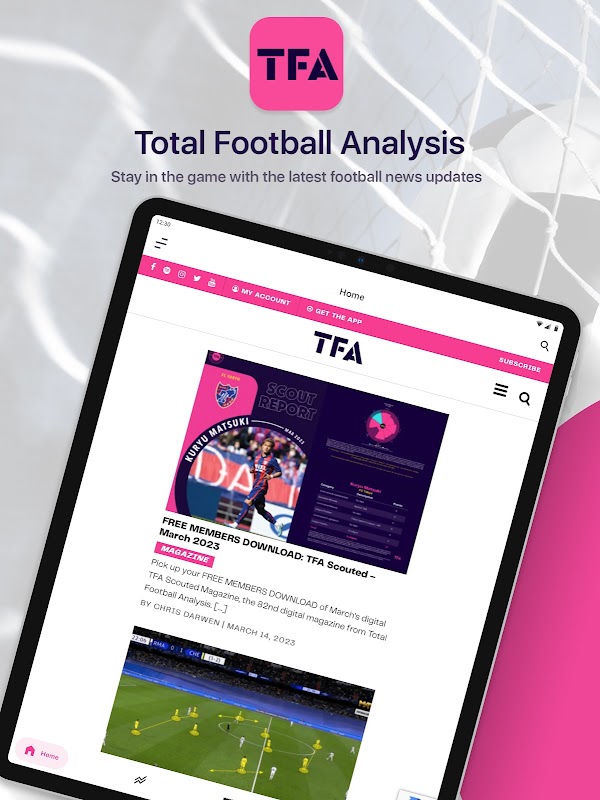 "Total Football Analysis" is a new football news app that provides comprehensive coverage of the latest football news, analysis, and insights from around the world. The app offers features such as live scores and updates, in-depth match analysis, exclusive articles, player and team profiles, customizable push notifications, and a user-friendly interface.