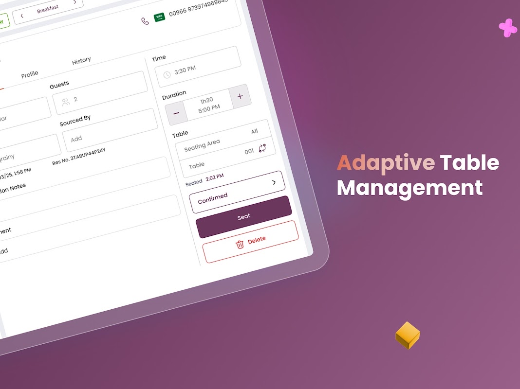 Manage your restaurant’s reservations, tables, and guest experience in one place. With TableFlow, you can track availability in real time, organize waitlists and walk-ins, and deliver personalized service to every guest. Simplify operations, boost efficiency, and keep your restaurant ahead with The Chefz TableFlow.