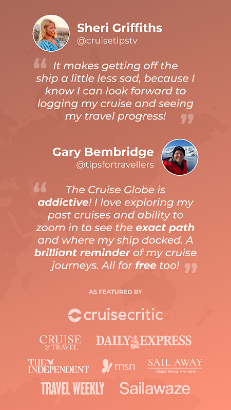 Cara baharu yang lebih baik untuk menjejak kapal persiaran secara langsung. Bebas iklan sepenuhnya, dengan pengalaman 3D yang diperibadikan yang menunjukkan semua kapal kegemaran anda dalam paparan satelit.
