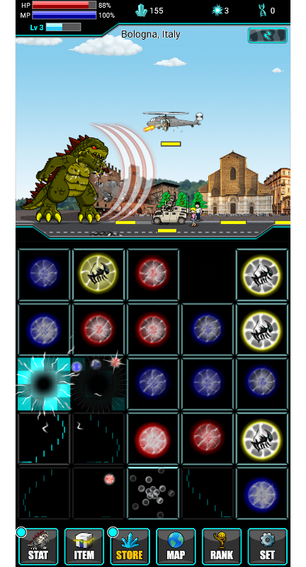 Kita mula memusnahkan bandar-bandar utama planet ini dengan menghantar monster besar untuk menakluk planet ini.