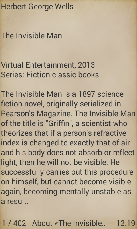 Fiksyen buku klasik: The Man ghaib oleh Herbert George Wells