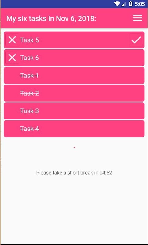 • Memperluaskan seluruh senarai anda dengan cara yang sama. Pada penghujung hari, pindahkan item yang belum selesai ke senarai baru enam tugas untuk hari berikutnya.