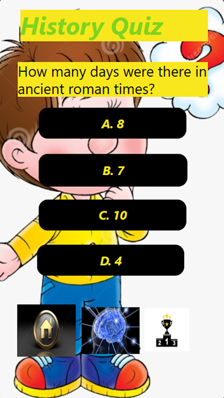 Apl kuiz pada asasnya hanyalah kuiz kecil yang menguji anda dalam Geografi, tempat, Sejarah dan sains. Setiap bahagian akan mempunyai 2 soalan untuk anda jawab, semoga berjaya!