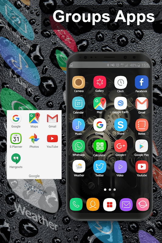 Apply the Theme for Samsung S8 plus theme now, to make your phone faster and organized. The original app icons, clock and weather theme of your phone will be replaced by the Theme for Samsung S8 theme.