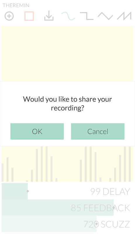 Ini adalah alat Synth pelbagai sentuh. Bermain dengan menyentuh dan meleret skrin, mengubah bentuk gelombang dan gelongsor kesan untuk membuat apa-apa dari tradisional sci-fi Theremin bunyi untuk soundscapes scuzzy dalam. Gunakan kawalan pemain gelung untuk rekod, gelung dan lapisan overdub. Kemudian jika anda ingin menyimpan atau berkongsi rakaman anda, klik butang muat turun untuk menghantar fail wav anda untuk aplikasi serasi yang lain seperti Mesej, E-mel, Dropbox dan lain-lain