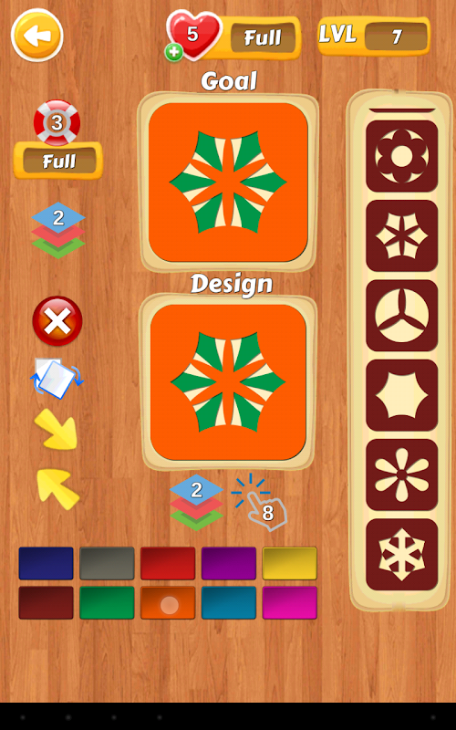 • Rotate a shape, move it back or forward and change its colors or delete it