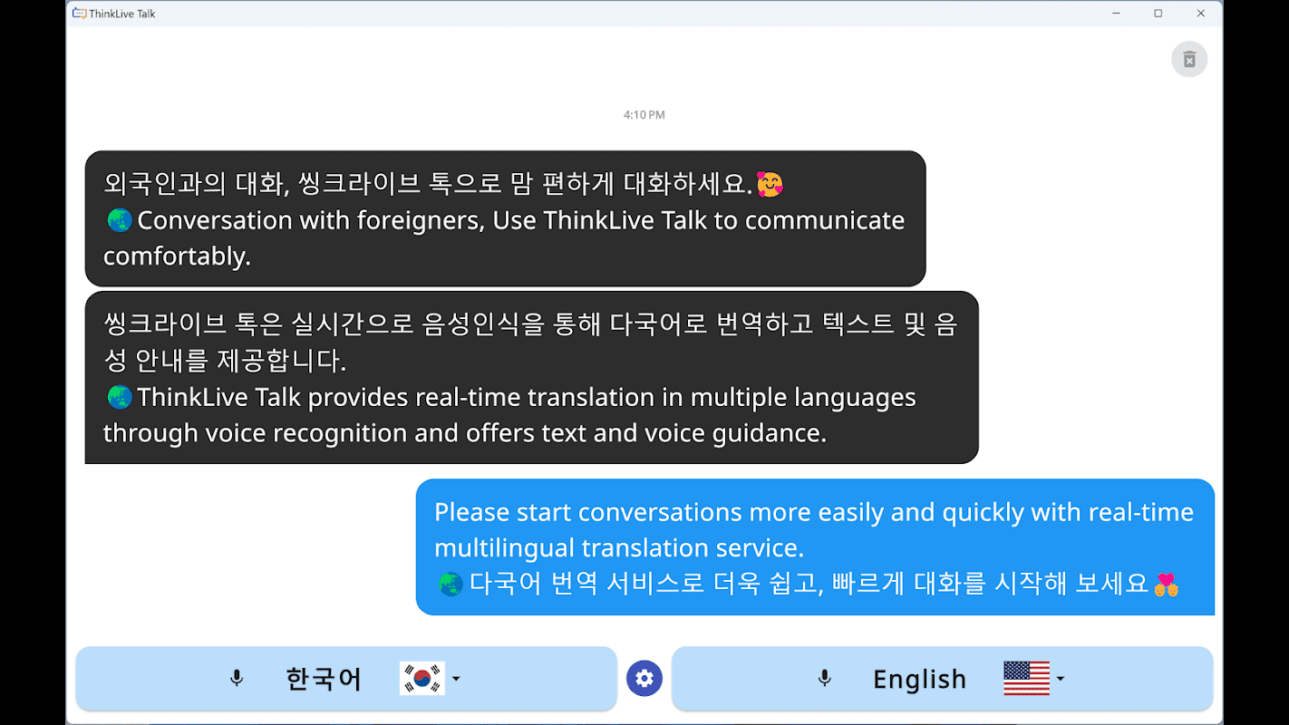 Think Live Talk diterjemahkan ke dalam pelbagai bahasa melalui pengecaman suara dalam masa nyata dan menyediakan panduan teks dan suara.