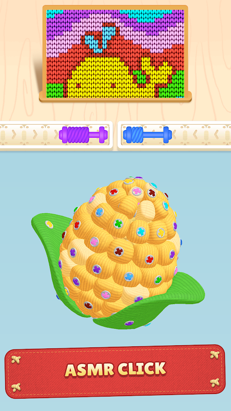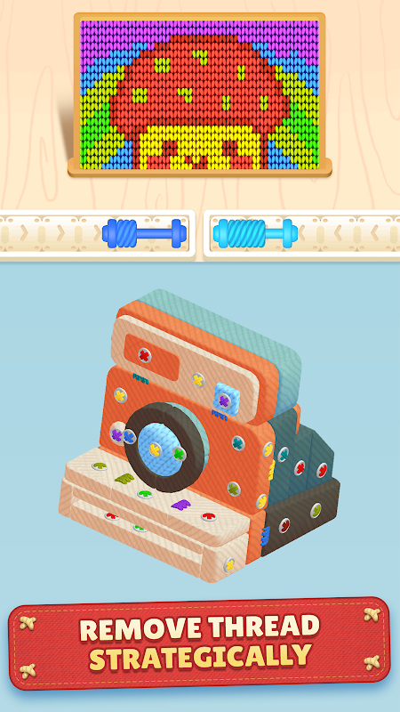🎨 Reka Bentuk Cantik – Setiap peringkat membuka kunci arca benang berwarna-warni, daripada haiwan kepada bentuk dan corak seni piksel.