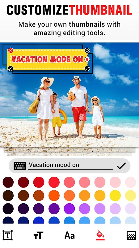 Tambahkan teks yang menarik pada lakaran kecil dengan memilih saiz fon, warna fon dan jenis fon dengan pembuat seni muka depan saluran ini. Tambahkan pelekat cantik pada lakaran kecil untuk memberikan rupa yang hebat menggunakan studio yt percuma ini aplikasi pembuat lakaran kenit.