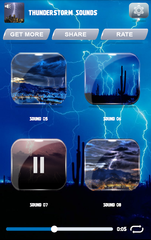 Thunderstorm Sounds will surely draw everyone`s attention. No matter if it is a sharp and loud crack or an awesome low rumbling sound, you`ll find your friends bricked with terror. Get your daily dose of adrenaline with these crazy new roaring ringtones right now! These free and extremely loud tones bring to you fantastic selection of earsplitting message alerts, deafening alarm sounds and the best blasting ringtones! Show your courage and startle your friends wherever you are, every time your phone rings! Great new app brings awesome selection of the most amazing powerful ringtones you can imagine! Don’t wait to hear heavens thundering on your friend’s phone – be the first to have this cool app with the best and loudest ringtones.