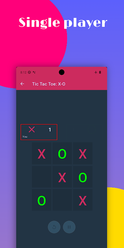 Alami kegembiraan abadi Tic Tac Toe pada peranti anda! Sama ada anda mengimbas kembali kenangan indah atau menemui permainan ini buat kali pertama, apl ini menawarkan permainan klasik dalam pakej moden. Bermain menentang rakan dalam mod dua pemain, atau uji kemahiran anda terhadap AI dalam mod pemain tunggal. Dengan kawalan intuitif dan reka bentuk yang anggun, aplikasi ini menyediakan hiburan yang tidak berkesudahan untuk pemain dari semua peringkat umur. Muat turun sekarang dan mulakan pengembaraan Tic Tac Toe anda.