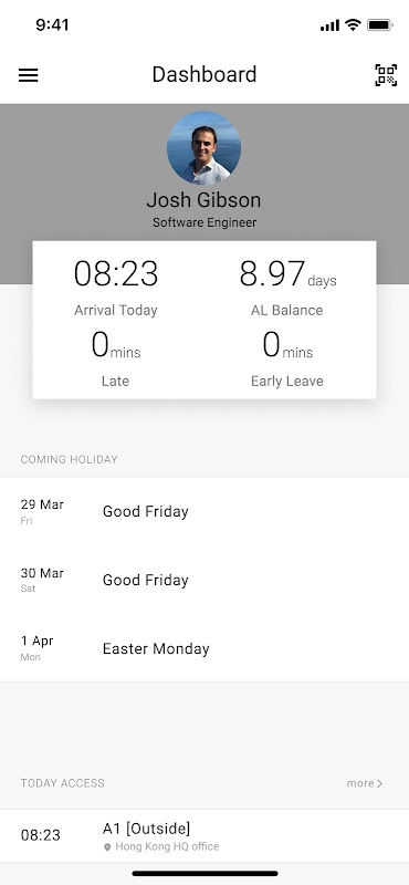 - Memantau rekod kehadiran anda dan log akses