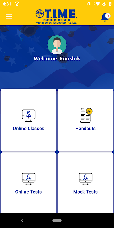 NOTA: Aplikasi ini SAHAJA menyokong log masuk pelajar TIME yang terdaftar.