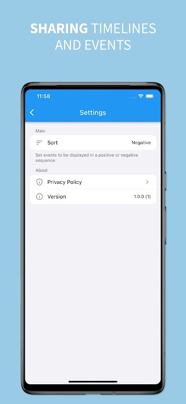 Aplikasi ini membolehkan anda membuat beberapa garis masa untuk mengatur dan mengkategorikan acara mengikut keperluan anda. Anda juga boleh mengubah suai, memadam dan mengisih garis masa untuk mengurus data anda dengan lebih baik.