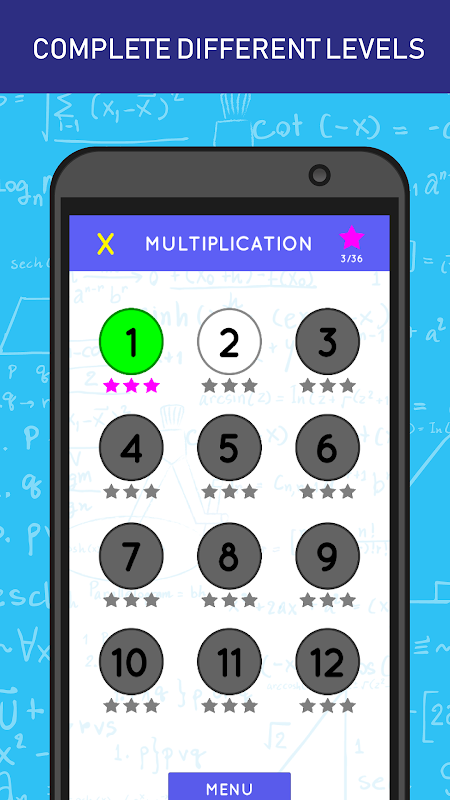 Improve your response time. Over 30 levels with addition, subtraction, multiplication and division. Compare your performance with the rest of the world!