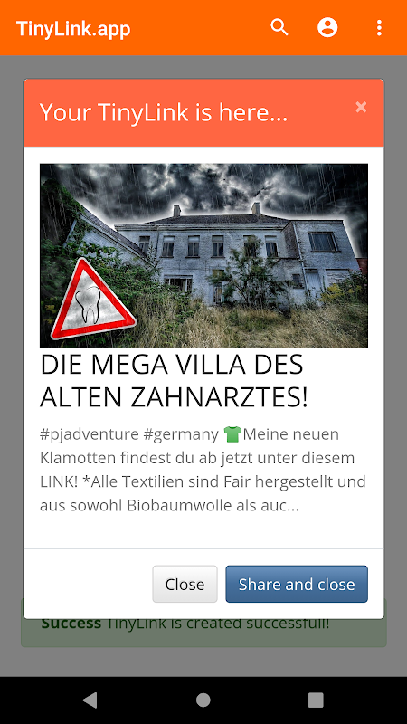 To share a TinyLink, you simple click on share button inside of your app's, like YouTube and share with TinyLink.app.