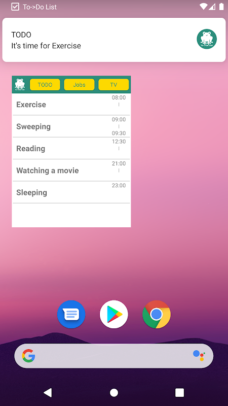 Widget di skrin utama menunjukkan TODO yang belum dilaksanakan.