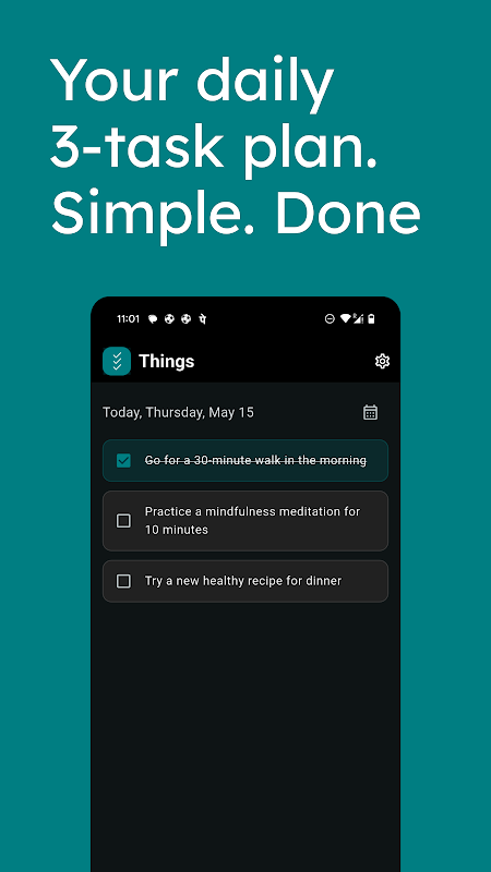 3 Things ialah tugas harian yang minimalis dan penjejak tabiat yang membantu anda kekal fokus, membina momentum dan berasa berjaya — tanpa banyak senarai tugasan yang panjang.