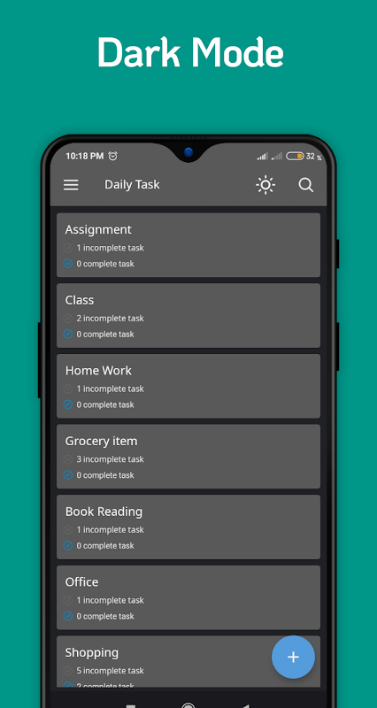 Daily task app is work for writing simple tasks to remember later. It is like to do list app. It is a free short notes type app where you can write short things to remember it later. This notes app will help you a lot. Because, it has such a great design and it's very unique. Also it has dark mode feature.