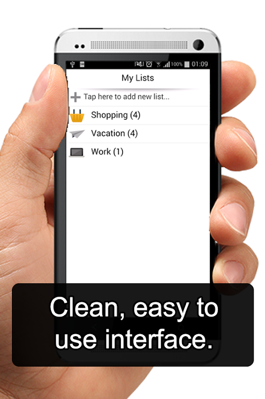 Simple, clean and fast To Do Lists. Easy to use and create: shopping lists, reminders, tasks for work or small projects. Just install and start using, no account or registration required. ~ All Free! ~