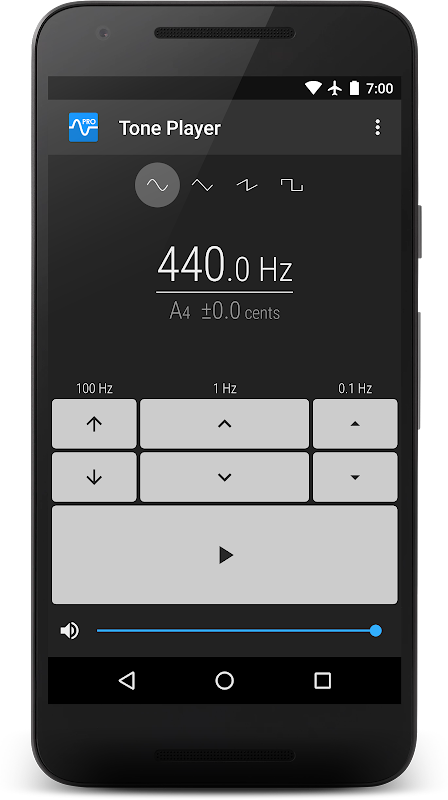 Tone Player memainkan nada sederhana yang berterusan pada kekerapan yang dinyatakan